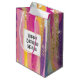 En presentväska med abstraktens bakgrundsdesign. Vibrant rand i både fet och pastel färg. Pinks, blues, lila och gult färg i kombination med faux guld glatt glitter överst.