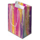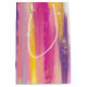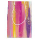 En presentväska med abstraktens bakgrundsdesign. Vibrant rand i både fet och pastel färg. Pinks, blues, lila och gult färg i kombination med faux guld glatt glitter överst.