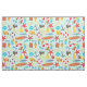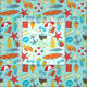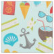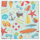 Grafik av inslag på strandsemester på en ljusblå bakgrund, sömlös upprepning av mönster
