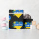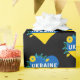 Den färgstarka pappra utformningen som stöder Ukrainas folk kännetecknas mönster av hjärtformade ukrainsk flagga i blått och gult med en blommornas vind och mittentexten från Ukraina. Svart bakgrund