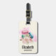 Personligens bagagetapp med en snygg bild. 3 färglösa makaroner, rosa, grönt och blått med en blommigt i finare ro och en stänk av rosa vattenfärg bakom sig. Äkta och snyggt också! Ljust gult.