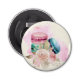 Flaska-öppnare med en fin bild. 3 färglösa makaroner, rosa, grönt och blått med en blommigt i finare ro och en stänk av rosa vattenfärg. Äkta och snyggt också! Ljust gult.