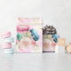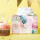 Svälla pappra mönster med en snygg bild. 3 färglösa makaroner, rosa, grönt och blått med en blommigt i finare ro och en stänk av rosa vattenfärg bakom sig. Äkta och snyggt också!