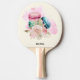 Personlig pingpongpaddel med en fin bild. 3 färglösa makaroner, rosa, grönt och blått med en blommigt i finare ro och en stänk av rosa vattenfärg. Äkta och snyggt också! Ljust gult.