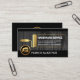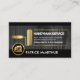 Ett exquisitsivt grått-träskikt kapslas in av svart rand vid kortets övre och nedre kant. Här ljuger du en guld-rullfärgpensel som fungerar som en skylt till dina kortuppgifter. Över överst finns namn, kontaktinformation och ett sloganalternativ för att publicera dina tjänster. Nära basen är en logotyp i guld som du kan använda vid sidan av ditt prestigefyllda namn.