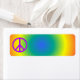 Ett färgat returadress-klistermärke med fredstecken på det