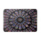 Vackert navelfärgat nedfläckad glas. Notre-Dame, är en medeltida katolsk katedral i Paris, Frankrike som tyvärr brast den 15 april 2019 och orsakade stora skador. Fönstren av nedfläckad glas i Notre-Dame, särskilt de tre fönstren i ro, är några av de mest framträdande egenskaperna i katedralen. Fönstren i ro gavs till katedralen av Kung Louis IX av Frankrike, även känt som Saint Louis. Det här färgade katedralglaset är ett så fantastiskt historiskt biet och skulle se underbarare ut i ditt hem eller på ditt kontor!
