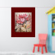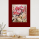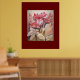 En oljemålning av en blommigt i skuggor av rödaktig rosa med långa steamer och löv i ljusskör bakgrund på en ljus rosa och krämig bakgrund - Från min blommigt samling.