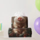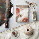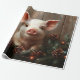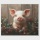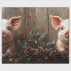 Dekoupage som omsluter papper med en digital oljemålning av ett sött gris, omgivet av gräs och gräs träd garland med julgranar i ljus. Träbakgrunden lägger till en rustik vibe i teckningen.