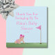 De här favoritmärkena har en liten krympning från flicka på grönten med sin putter, skapar för en unik och oförglömlig utformning. Med ett sjudande färg och charmerande detaljer fångar det perfekt glädjen och upphetsningen att välkomna en ny liten golfer i världen. Du kan enkelt anpassa mallen genom att klicka på den blå knappen "Anpassa".