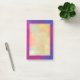 En vattenfärgsmålning i magenta, rött och blått i en abstrakt stil med tjocka fet penseldrag som skapar ett gräns kring en rosa kantad övertäckning med antydningar om rosa, blått och gult i en målad abstrakt design.