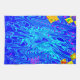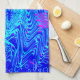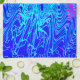 Den här utformningen har en mörk blått bakgrund med ljusblå snurrar och gult delarare på kökshanddukar
