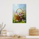 Underbara Påsk Poster med ett stort påskägg och söta djur som en påskhare eller kanin. Magic Fantasy Forest Blommigt Art med blommor och ätliga djur. Cute Påsk Basket.