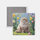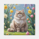 En glad katt sitter fredligt på lush grönt gräs, omgiven av färgfulla vår blommar under ett mjukt blå himmel. Den här digitala oljemålningen fångar upp ett ögonblick med uttryckliga penseldrag, varmt färg och en känsla av varm glädje.