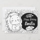 Cute Personlig Coloring Birthday Card with botanical grey and Porcupine