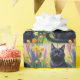 En glad katt sitter fredligt på lush grönt gräs, omgiven av färgfulla vår blommar under ett mjukt blå himmel. Den här digitala oljemålningen fångar upp ett ögonblick med uttryckliga penseldrag, varmt färg och en känsla av varm glädje.