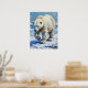 Bilden är en texturerad målning av en polar som går genom ett landskap täckt av snö. Bilderna har tjocka, synliga penseldrag i ett impasto stil, som i ge på polarnas päls och snö i tre dimensioner känns som en del. Paletten färg är till största delen vit och har flera blå nyanser, med subtila gult och orange i björnens päls.