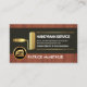 Ett brunt hölje av mörk är inkapslat av träplattor på kortets övre och nedre kant. Här ljuger du en kreativ guld-färgpensel som fungerar som en skylt till dina kortuppgifter. Överst finns namn, kontaktinformation och ett sloganalternativ för att publicera dina tjänster. Mot basen är en logotyp i guld som man kan använda vid sidan av ert prestigefyllda namn.