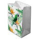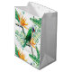 Vackra färgade papegoja och orange blommor, sömlösa mönster. Mall för presentsäck för anpassade