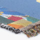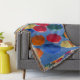 Färgfulla paraplyer i himlar blå orange röd gult stänk i färg