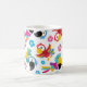 Färgpartiklar, tropiska partiklar, fåglar, blommor kaffemugg