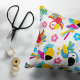 Färgpartiklar, tropiska partiklar, fåglar, blommor prydnadskudde