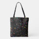 Lägg till lite roligt till din shopping resa med den här tälten. Med en svart bakgrund med färgstarka stänk täcker det hela säckområdet. Bär hela sak från livsmedel till saker på stranden i den här mångsidiga väskan.