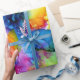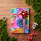 Denna pappra förpackning har en färgstark regnbåge abstrakt mönster med bläck och vattenfärg.