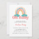 Anpassa enkelt den här snyggten till en modern regnbågsinbjudan till din babydusch färg är mycket vibrerande och gör denna inbjudan till perfekt för en sommarhändelse. Skriv ut hemma eller skicka inbjudningarna till ditt hem.... (eller båda!).