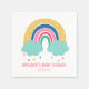 Färgstarka regnbåge, pappra servetter av personlig. Färgdodlada regnbåge, moln, dodlformer och regndroppar av abstrakt. Mallen innehåller två linjer för anpassningsbarna för samordning av rosa färg.