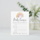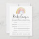 Cute babydusch gissar på ett spelkort med en färgstark vattenfärgad regnbåge överst. Uttrycket "Baby Guesses" finns i ett modernt kalligrafiskt skript. Anpassa med instruktioner om anpassningsbar, gissningskriterier och mamma till att duscha namn och barn. Designen koordinerar med vår Cute and Colorful Watercolor Rainbow and children-samling.