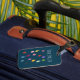 Färgstark design av mönstrade regndroppar med ett biotema. Kreativ och fest mot en marin blå bakgrund. mönster kollage art stil regndroppar.