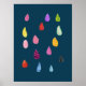Färgstark design av mönstrade regndroppar med ett biotema. Kreativ och fest mot en marin blå bakgrund. mönster kollage art stil regndroppar.