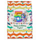 En söt design med ett färgstarkt regnbågsnummer och en dansunicorn! Du kan anpassa den med dina egna detaljer. En söt charmig design!