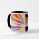 Färgrik abstrakt anmärker mot vit mugg