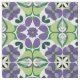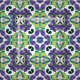 Livligt detaljerad blommig illustration i kalejdoskopisk symmetri, som visar lila blommor och gröna blad på en vit bakgrund. Perfekt för konstnärliga, dekorativa eller botaniska teman.