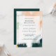 Denna färgglada abstrakta bröllopsfestinladan är perfekt för din unika moderna boho-fest. Handmålad med strukturerade penseldrag i mörkgrön, persika och senap, allt överlagt med en minimalistisk genomskinlig fyrkant, kommer det säkert att ge din tillställning en enkel men rustik bohemsk känsla.