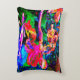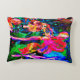 En ljus och färgrik abstrakt irisdesign fyller utrymmet på båda sidor av denna blommigt kudder.