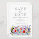 Färgrik akvarell bohemisk bröllop med vilda blommo spara datumet