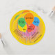 Rolig rundafödelsedagsfest inbjudan, med diagram av färgrika ballonger, på en gul och rosa bakgrund. Personifiera den svart texten för ditt barns speciella dag.