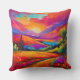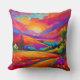 Färgrik bergssolnedgångslandskapsmålning kudde