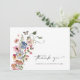 Vår färgglada blommiga tacksamhetskort är det perfekta sättet att dela din glädjerika händelse! Unikt och fantasifullt har detta moderna kort fantastiska rustika boho-chic handmålade akvarellblommor i färgerna mörkblå, ljusröd, rosa, gyllengul, livfull röd och salvia gröna blad som är perfekta för moderna vår- och sommarträdgårds-inspirerade bröllop. Romantiskt och tidlöst med färgstarka inslag som kommer att imponera på dina gäster på din stora dag! Hitta matchande föremål i Colorful Boho Whimsical Wildflower Wedding Suite.