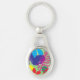 Färgrik blommabakgrund ovalt silverfärgad nyckelring