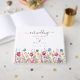 Denna färgrika gästbok har ett omslag med en fängslande boho-trädgårdsdesign med vilda blommor. De vilda blommorna i nyanser av rosa, gul, och blå skapar en livlig och pittoresk scen som sätter tonen för en livfull och naturlig fest. För att anpassa detta ytterligare, klicka på "anpassa ytterligare"-länken och använd vårt designverktyg för att justera denna mall enligt dina önskemål.