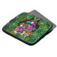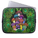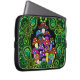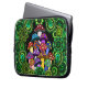 En sleeve för din bärbar datordator med färgrika psychedelic champinjoner som omges av gröna paisley och gröna mandalas.