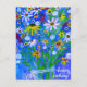 Färgrik dajliebukett blå födelsedagskort anpassat vykort