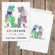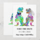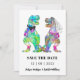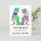 Gläd dina gäster med denna roliga dinosaurie-tema bröllop T Rex brud och brudgum sparar datumet. Lätt att anpassa med brudens och brudgummens namn och bröllopsdatum. Färgrika akvarell T Rex brud och brudgum illustrationer med modern typografi. Unik originalkonst av konstnären Catherine Sweetman