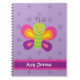 Personliganteckningsbok som presenterar en färgrik fjäril med en härlig purpurfärgad blom- bakgrund. Gullig och rolig design för sakkunniga för flickor. Beställnings- monogrammed gåva.