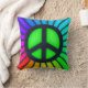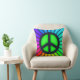 Dekorativ kudde med en färgrik fredsteckendesign.