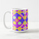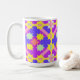 Livfull abstrakt illustration som visar ett färgrikt och symmetriskt geometriskt mönster med djärva former och livfulla nyanser, som förmedlar en känsla av modern konstnärskap och designkomplexitet.